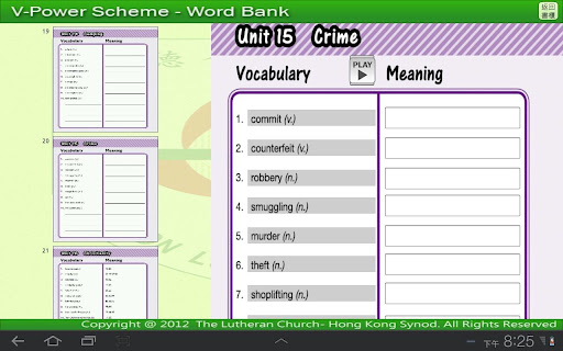 V-Power Scheme(Primary) 是一個加強學生詞彙能力的計劃。透過朋輩、家長及老師的參與,我們希望學生有系統地學習英文詞彙,繼而主動建立自己的詞彙庫,提升英語能力。