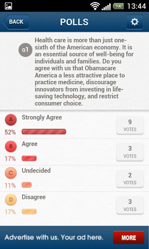 Poll Results – receive poll results in real time to each poll as simple graphical illustrations that let you see how other people feel on key issues and events.