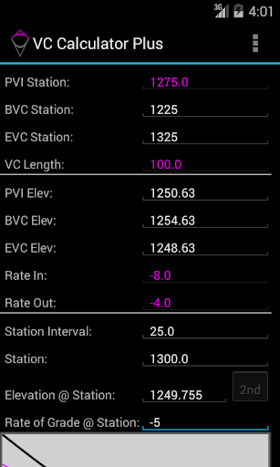 Input various combinations of vertical curve components and the calculator will automatically fill in the rest.