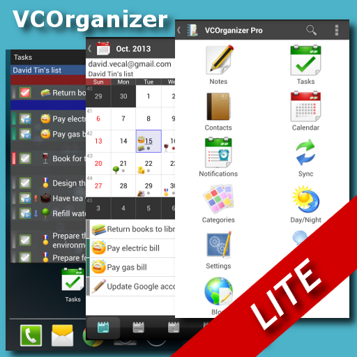 The Lite version allows you to test the Outlook sync with WiFi, USB or Bluetooth. It also allows you to have a look and feel of VCOrganizer.