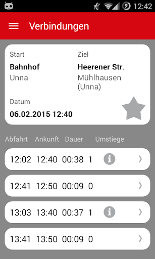 - Liegen aktuelle Hinweise oder Verspätungsmeldungen vor, zeigt die App diese automatisch in der Fahrplanauskunft an.