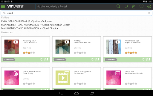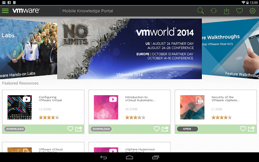 The Mobile Knowledge Portal gives you access to VMware marketing and technical content. Use the application to watch installation videos, read product whitepapers, and learn best practices.