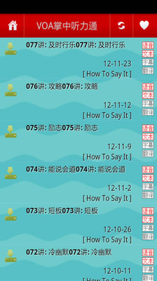 VOA掌上听力通设有VOA双语新闻、常速VOA听力、慢速VOA听力三大版块,包括美语训练班、美语怎么说、商务礼节英语、美国习惯用语等40多个栏目,全部音频每天同步更新,并可一次性下载后存到手机继续听读,是您学习标准美语的最佳工具!