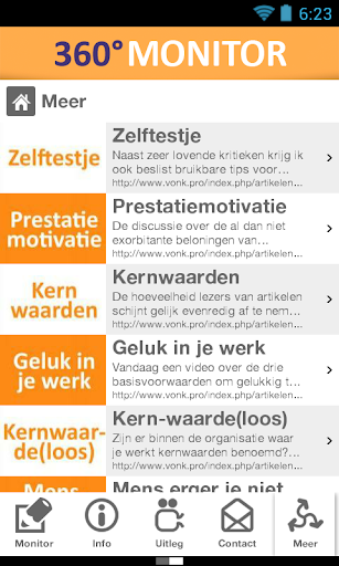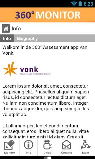 360° MONITOR is een product van VONK (Bureau voor Functionele Mensenkennis). Het betreft een instrument waarmee, anders dan bij bestaande 360 graden feedback instrumenten, over een langere termijn een in beginsel onbeperkt aantal gedragsobservaties kunnen worden uitgevoerd. De kandidaat (geobserveerde) ontvangt rechtstreeks en automatisch enkelvoudige rapportages over hetgeen de assessor (observator) heeft waargenomen. Daarmee verzamelt de kandidaat gedurende een langere periode materiaal op basis waarvan hij of zij de eigen competentieontwikkeling kan volgen (monitoren). Doordat observaties worden geregistreerd met behulp van mobiele devices, leent het instrument zich uitstekend voor 'buiten' gebruik (bijvoorbeeld bij training en oefening van hulpdiensten). De app bevat behalve toegang tot de 360 graden monitor (survey) instructievideo's voor competentie-ontwikkeling.