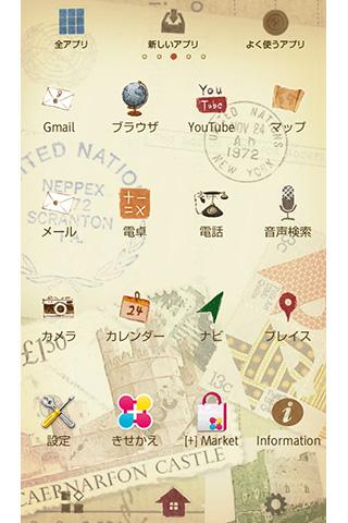 ★アイコン20点増量!★封筒や便せんの上にレトロな外国の切手を集めたアンティークな装いのきせかえテーマ♪