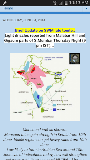 An interesting weather app that updates you with the latest on the South West Monsoon, high and low extremes in temperatures, and warnings of sudden rain or severe weather. Specially for the Indian sub continent.
