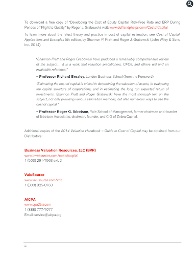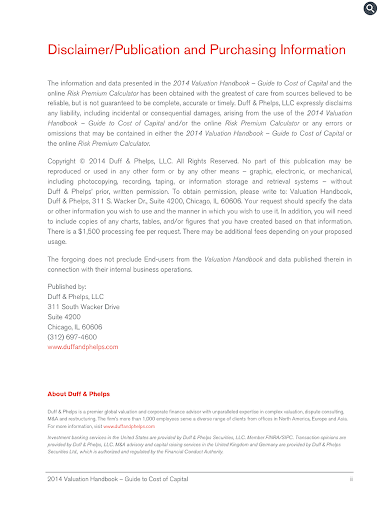 • Risk Premium Report data: All of the data in the Duff & Phelps Risk Premium Report (the Risk Premium Report is no longer published as a stand-alone publication).