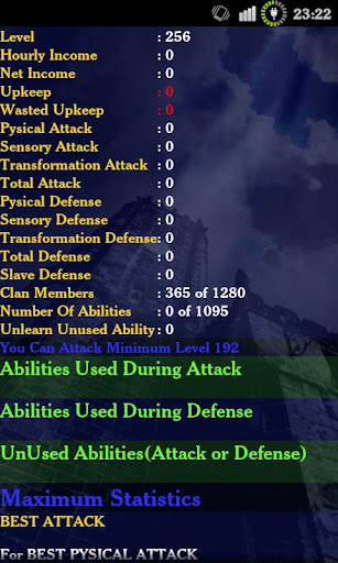 This application is a guide and calculator for your Storm8 Vampires Live game. This program has no connection to internet (except ads!) or your game, just an offline calculator that optimize your Vampires Live account. Completely free app! You can easily make calculations for optimum income, attack and defense points about slaves or abilities. There is no limit, can use many accounts and easily manage them.