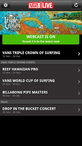 Vans Live 2.0 offers easy to navigate live event coverage from our best productions, spanning from the Vans Triple Crown of Surfing to exclusive music showcases. In addition to high quality live event feeds, enjoy video and photo libraries and news updates for all of your favorite events. Share event photos and news items with ease by utilizing the Facebook, Twitter and E-mail share functionality. Don't miss out on the event: Just sign up for push alerts and you will receive an "Event is ON" notification. If you can't be there, Vans Live 2.0 is the best way to tune in to experience all of your favorite Vans events on your Android Phone.