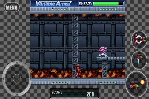 ロボット形態は威力は弱いが上下左右ななめの8方向への攻撃が可能。ビークル形態は横方向の攻撃しかできないが強力な攻撃が可能でせまい通路も進行することができる。形態はボタン一つでいつでも変形可能!それぞれの特徴を活かして状況に合わせて変形しよう!