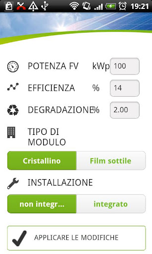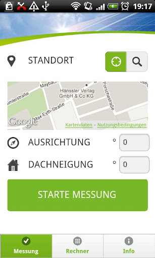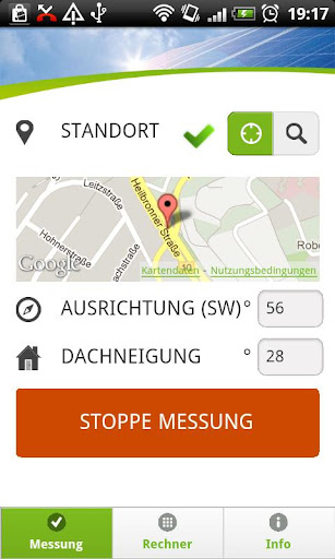 The inclination of the modules can be entered manually or by automatically measuring the position and angle of the device. The orientation is automatically entered if your device supports compass or can be entered manually.