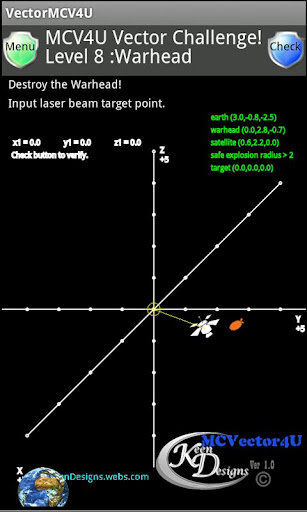 Don’t call yourself an expert in Vectors until you meet the challenges in this game. This app is an excellent tool to exercise and evaluate your knowledge in Vectors/Physics theory, in particular at Grade 12 level (MCV4U) or Freshman University Mathematics/Physics. Problems in this application, 9 levels in total, are practical and fun involving vector equations, modeling, intersections, products, resolution as well as many interesting and practical vector applications. Problem puzzles are highly interactive and randomly generated. These mind teasing challenges are perfect for refining your vectors skills whenever and wherever. Minimum requirements for this app are 480x320 screen resolution and 4.7 OS.