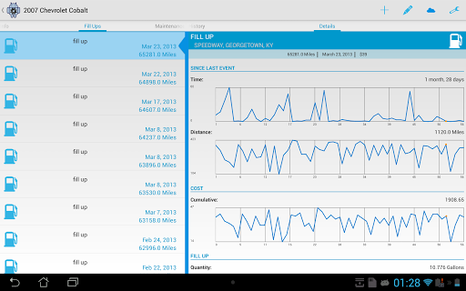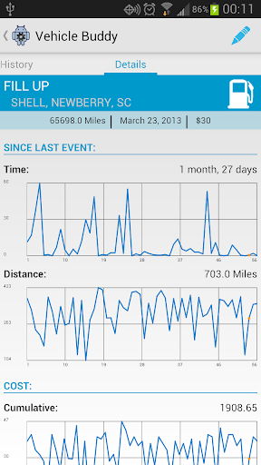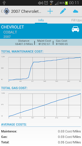 Along with keeping information on each maintenance record, you can also see the history and different graphs for each maintenance type. You can also see graphs for all maintenance at once for your vehicles..