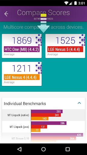 Vellamo 3.1 is designed to be an accurate, easy-to-use suite of system-level benchmarks for devices based on Android 4.0 forward. In Vellamo we want to enable performance enthusiasts to really understand their system, and how it compares to other systems, and our mission has just begun.