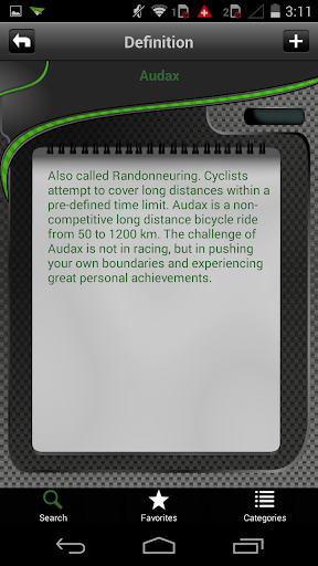 Using links and succinct definitions, Velo Glossary provides a fast and convenient way to understand and learn cycling terms, lingo and key bicycle components. The app will continue to be upgraded with the latest terms and information, so you'll always be up-to-date.