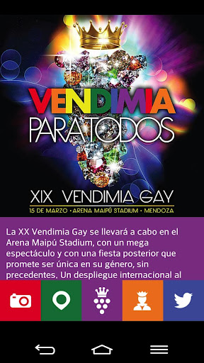 El próximo 7 de marzo de 2015, al término de la Vendimia Central como fuera en sus inicios, Mendoza será protagonista en la vigésima edición de una puesta internacional que enmarca los grandes festejos de nuestra provincia, "Vendimia Para Todos", la XX Fiesta De La Vendimia Gay.