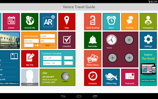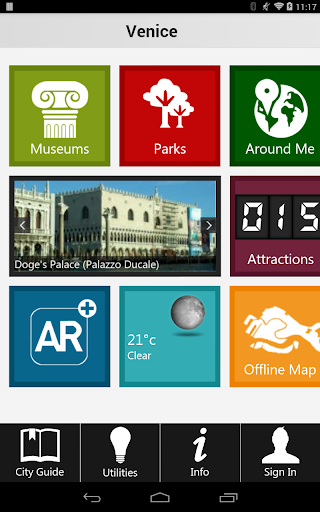With detailed information of around 15 museums and parks, and 20 featured attractions along with 1000s of other Points of Interest carefully integrated with every single travel activity, Venice Travel - Pangea Guides is power packed with utilities and information. From Facebook Check-Ins to local event information, offline map to intuitive Augmented Reality experience, we have brought most of the travel activities and application needs to one single app. Save precious travel time rather than switching between several apps and utilities!