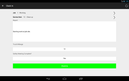 Time and location tracking for employees made easy. Employees can clock in and out in real-time, change job codes, service item