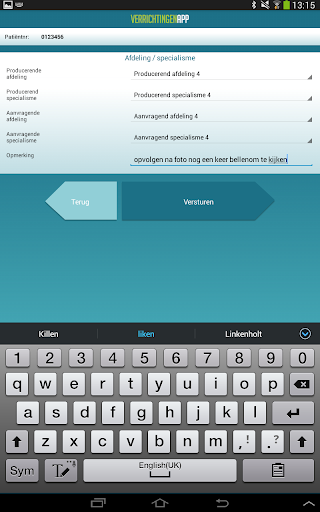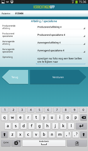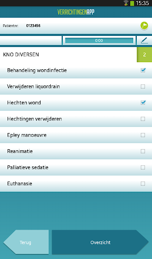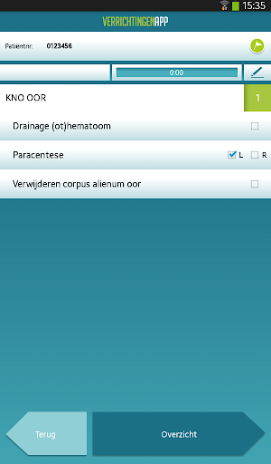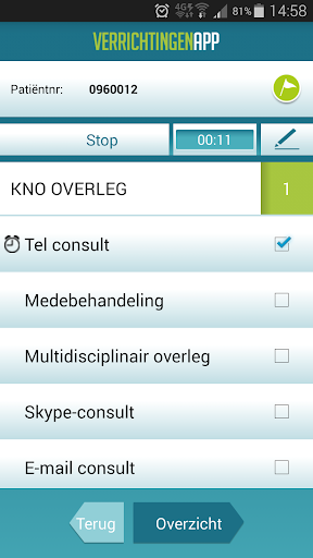 Elk specialisme ziet zijn eigen relevante verrichtingen in de Verrichtingen App staan, ingedeeld volgens eigen categorieën. Het begint bij het scannen van de patiënten barcode en het selecteren van de juiste verrichting(en) om deze vervolgens als ‘consult’ digitaal naar de administratie/EPD te verzenden.
