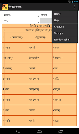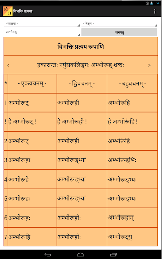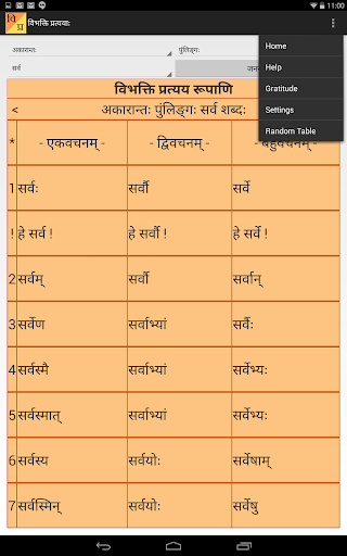 ViPra helps you create a table of declination for a selected word. This app uses Devanagari script to render tables.