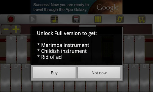 Upgrade to full version to get a children's xylophone and a marimba instrument in addition to the vibraphone already included. The upgrade also removes the advertisement.