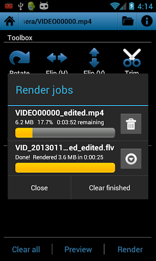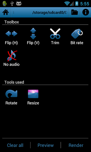 Video Toolbox is a video editor app that provides a set of tools to do the simple things you want with videos on your Android phone or tablet: rotate, trim, flip, resize, and convert.