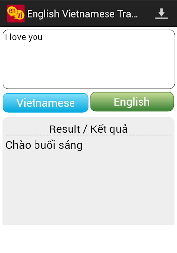 Vietnamese English Translator app is able to translate words, sentences and texts from English to Vietnamese, and from Vietnamese to English. Very easy to use with Fast and Accurate Translations. Vietnamese to English Translator can be used like a dictionary too.