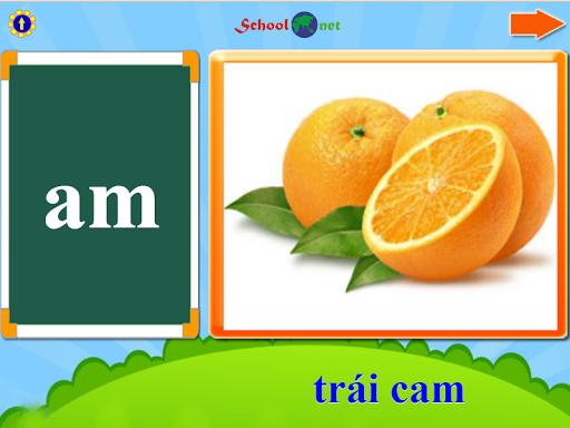 Phần mềm bao gồm 173 bài học, mỗi bài học là một âm vần chính của tiếng Việt. Âm vần chính sẽ hiện tại bảng phía trái, nhưng ban đầu sẽ hiện hình dấu hỏi. Chạm tay vào sẽ nghe phát âm và hiện âm vần này. Bên phải thể hiện 2 hoặc 3 từ khóa tương ứng với hình ảnh kèm theo. Chạm tay lên hình để thay đổi từ khóa. Nhấn tay lên từ khóa để nghe cách đọc. Nút mũi tên dùng để chuyển sang bài tiếp theo. Cho phép lựa chọ học 1 vần cụ thể bằng cách nhấn vào nút nhỏ góc trái trên màn hình.