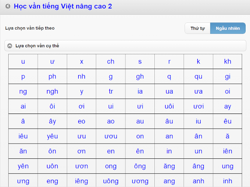 Ý nghĩa: học các âm vần chính, cách phát âm và đánh vần các vần này trong tiếng Việt. Dạng Nâng cao 2.