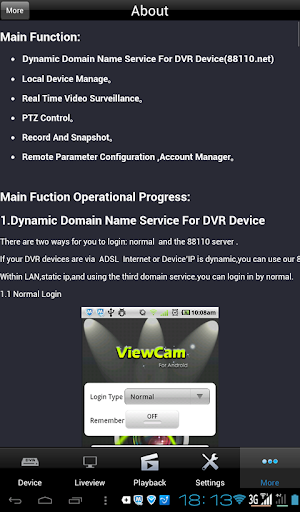 ViewCam Lite is a comprehensive monitoring and management mobile client for DVR, which integrated the features as follow: