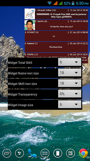 Click on sms to view all sms in that thread in pop-up style.
