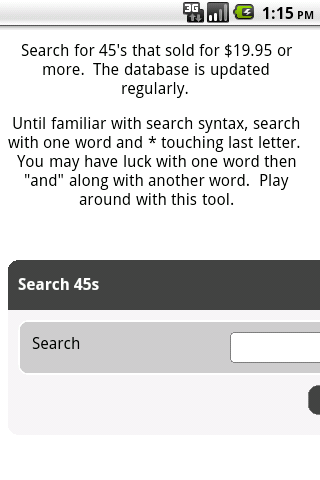 Close to 100,000 actual 45 records sold in this database. Find the value of 45 records at a garage sale or thrift store using the Record Price Guide 45 App. Also great for determining a list price if selling a record. All fro $2.99.