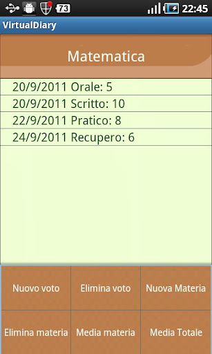 Siete stanchi di dover portare con voi ogni giorno diario e libretto, e soprattutto di dimenticarli a casa? VirtualDiary fa al caso vostro. Con il semplice tocco delle dita potrete sfogliare il vostro diario virtuale, avere una panoramica dei propri voti con relative medie e naturalmente potrete consultare l'orario scolastico, tutto in un'unica applicazione. Vi basterà sfiorare con le dita l'area di colore marrone nella parte alta per spostarvi tra i giorni della settimana e le vostre materie. Imparerete rapidamente ad utilizzare e non ne farete mai piu' a meno. Garantito da NazaApps!