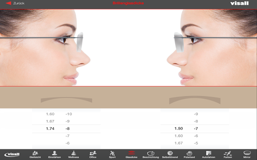 • Geben Sie Ihrem Kunden die Möglichkeit, die Dicke seiner Brillengläser mit verschiedenen Glasmaterialien zu vergleichen.