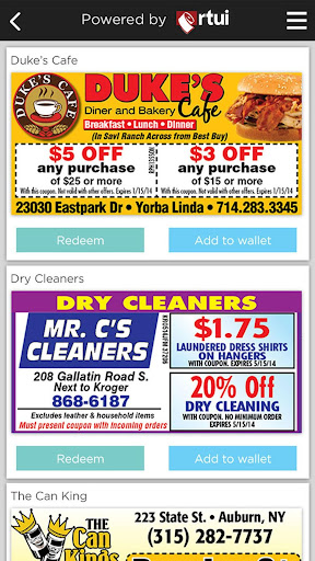 This app is powered by Register Tapes Unlimited (RTUI), a national leader in the creation and distribution of register tape advertisement. Using the back of register tape, RTUI advertises coupons for local businesses in 47 US states and throughout Canada.