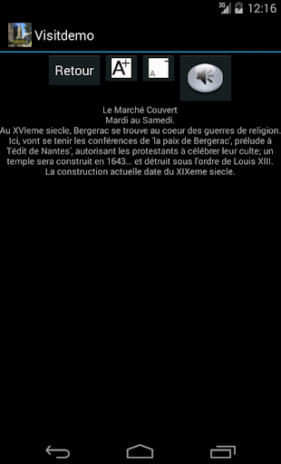 Il est proposé un ou plusieurs circuits dans la ville. Les étapes à suivre sont indiquées sur la carte et votre position est également indiquée. A l'arrivée à une étape vous pouvez disposer d'explications.