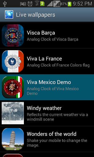 Viva México Reloj Fondo Animado de pantalla Demo es un Reloj Análogo establecido como fondo de pantalla, que marca la hora, minutos y segundos. Cuenta con 3 diseños diferentes de Fondos de Pantalla en la versión demo y 15 en la versión full