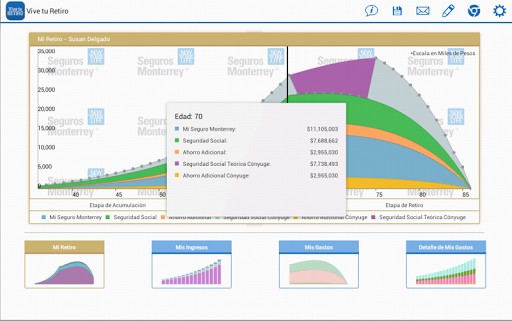 Vive tu RETIRO te ayuda a visualizar tu futuro. Esta aplicación te muestra: