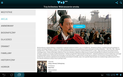Aplikacja mobilna umożliwiająca dostęp do serwisu VoD Onet, jednego z najpopularniejszych serwisów filmowych w Polsce. W swojej ofercie, prócz popularnych seriali, programów telewizyjnych, wciągających dokumentów oraz specjalnie wyselekcjonowanych bajek posiada także bazę kilkuset filmów ze światowej i polskiej kinematografii.