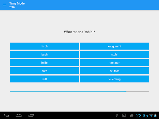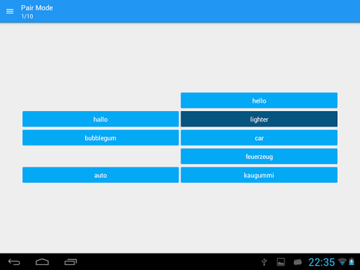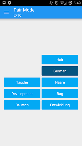 To make learning more easy and fun this App has multiple Modes, which will help you to recognize all Vocables: Classic Mode, Pair Mode and Time Mode. Learning Vocables will be like a Game!