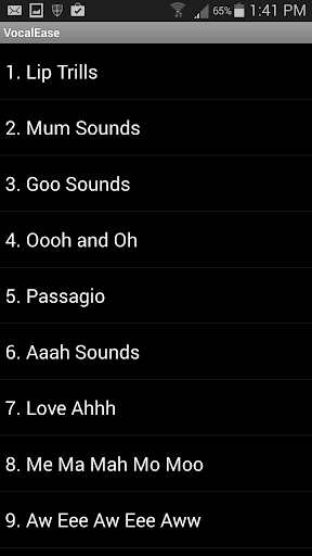 The Vocal exercises will automatically download the first time each is played, but will be played locally from the phone's SDCard subsequently.