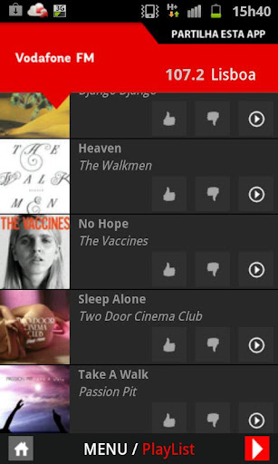 - Função "Gosto / Não-Gosto" para votar nas músicas que estão a tocar