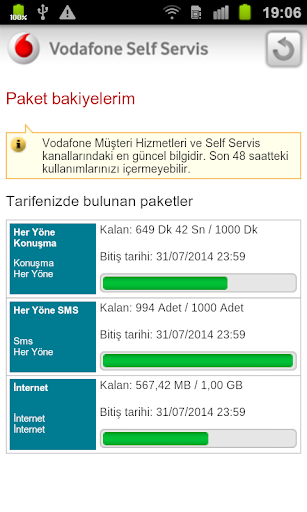 - Konuşma, mesajlaşma ve internet paket kullanımlarınızı görüntüleyebilir (son 48 saat dahil değildir),