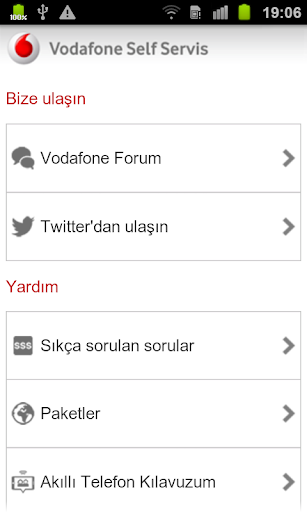 * Vodafone Self Servis ücretsiz bir uygulamadır. Vodafone Self Servis uygulamasını uygulama marketinden indirmek için kullanacağınız internet bağlantısı mevcut data tarifeniz üzerinden ücretlendirilir. Vodafone Cep Merkezi arama modülünde kullanılan 3.parti uygulamasından gelen haritanın kullanacağı internet bağlantısı için mevcut data tarifenizden ücretlendirilirsiniz.