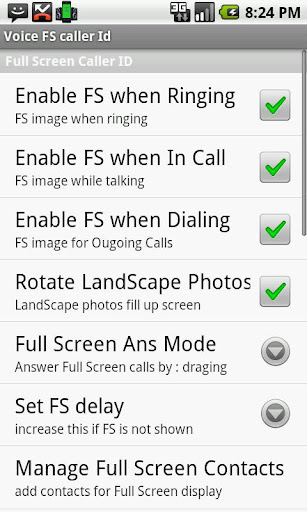 c) if answring a call does not work (on some android 2.3 phones) then uncheck "enable FS when in call"