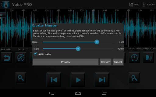 You can add audio effects, change tempo and volume, unit or mix record of any format or quality. Voice PRO has In-app purchases for certain features with nominal rate.