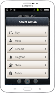 + Recorder item with many option menu Play/Move/Rename/Set Ringtone and Share your Voice Recorder