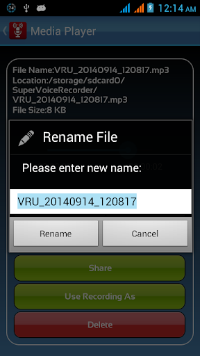 ✓. Easy to manage all the audio records. You could play, delete, rename, share and view the detail of the records in a very easy way. Share recordings with bluetooth, message or gmail etc.