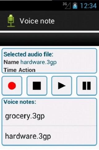 The app is just a simple voice recorder that enables you to record voice notes. These notes are stored as audio files in 3gp format. With the context menu you are able to rename the recorded voice notes, send them by email or delete them.