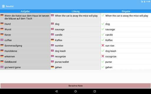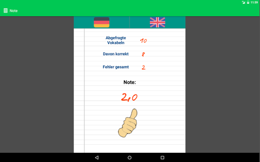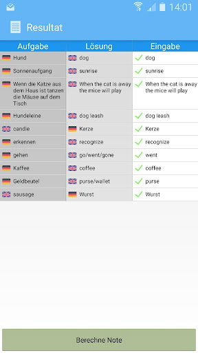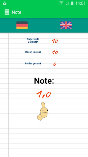 Eines der praktischsten Features der App ist z.B. der integrierte Vokabeltest mit echter Schulbenotung. Nachdem du dir über das integrierte 5-Kastensystem die Vokabeln nachhaltig eingeprägt hast bekommst du so optimal Feedback wo du gerade stehst.
